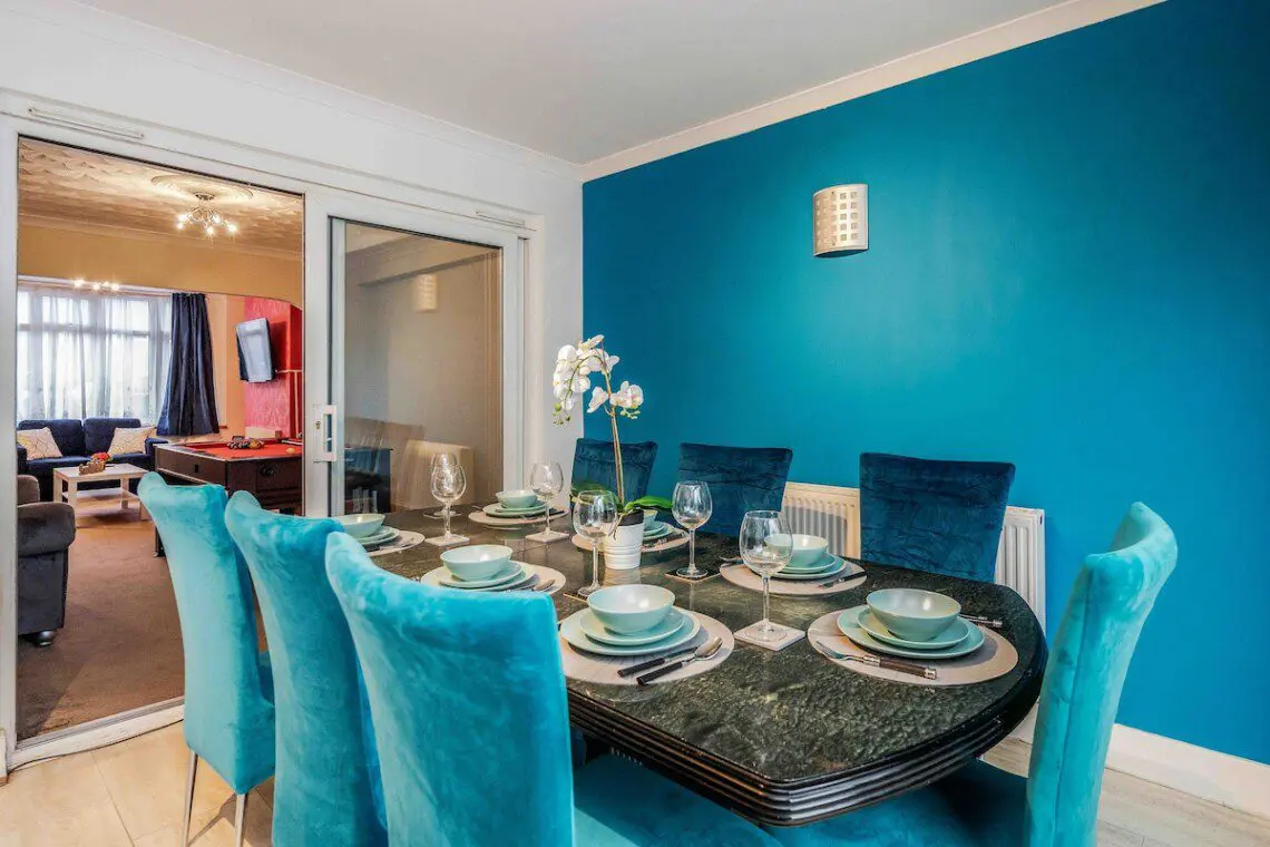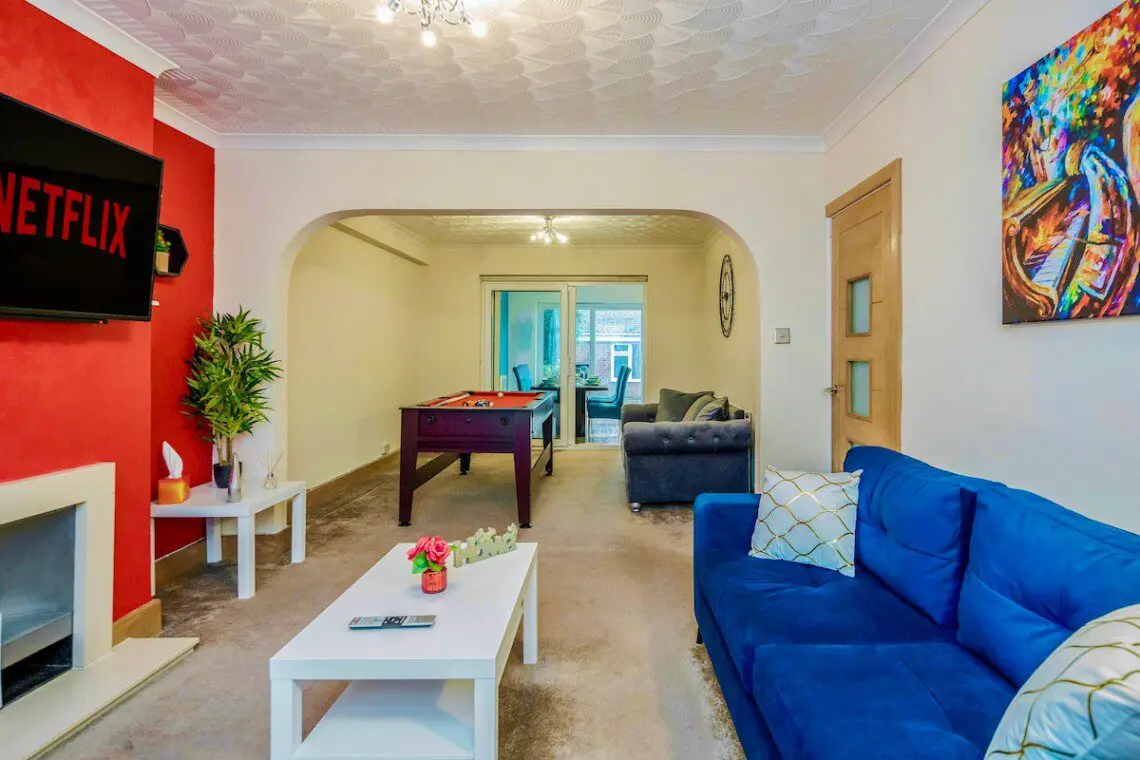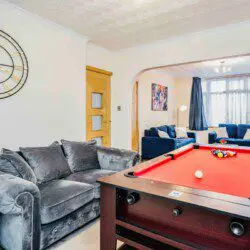 ✔️ Living Room- A Lovely Spacious Living Room Equipped with a 50”Toshiba Smart TV & Free Netflix so you can stream your favourite movies. You also have complimentary high-speed Wifi and comfortable sofas to kick back and relax. We’ve even thrown in a 6ft Pool table for a bit of play time!