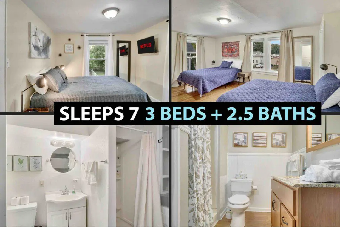 2 Full bathrooms + another 1/2 Bathroom means you and your friends will never need to wait on each other. One full bathroom is upstairs, the 1/2 bath is on the entry floor, and the other full bathroom is in the basement making it perfect for spraying off after a day at the beach!