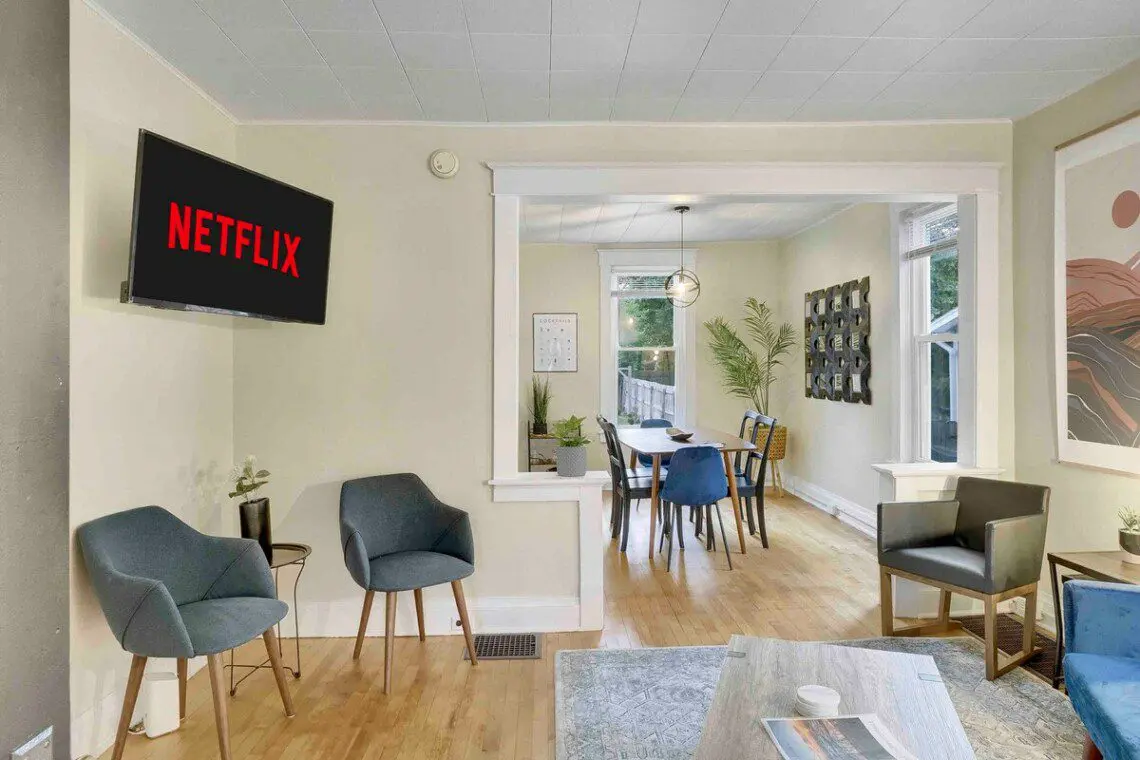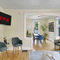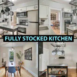 This is an older home so you may notice some creaky floors, doors that stick etc – none of this will impact your stay but we wanted to let you know about it. If you are a light sleeper, we have white noise machines in each bedroom so you don’t hear anyone walking to the bathroom etc.