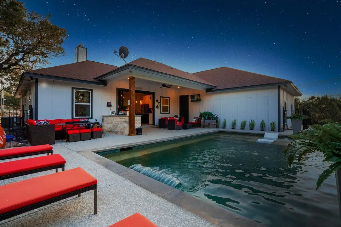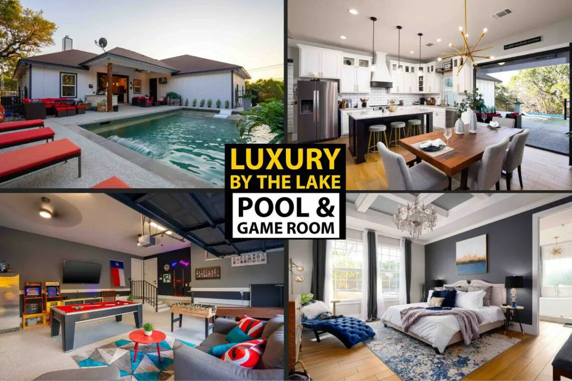 Book here if you want to have FUN! Not only is this luxurious home in a great location to take advantage of all the fun Canyon Lake has to offer (swimming, boating, fishing all less than 10 minutes away + wineries, tubing, wedding venues, and several great towns a quick drive away) but you will also have so much fun just staying in the home……Pool, 7 Smart TVs, Arcade Games (Mortal Kombat II & Pac Man), Shuffleboard, Pool Table, Darts, & More. If that wasn’t enough, there is high end furniture and FAST WIFI throughout!
