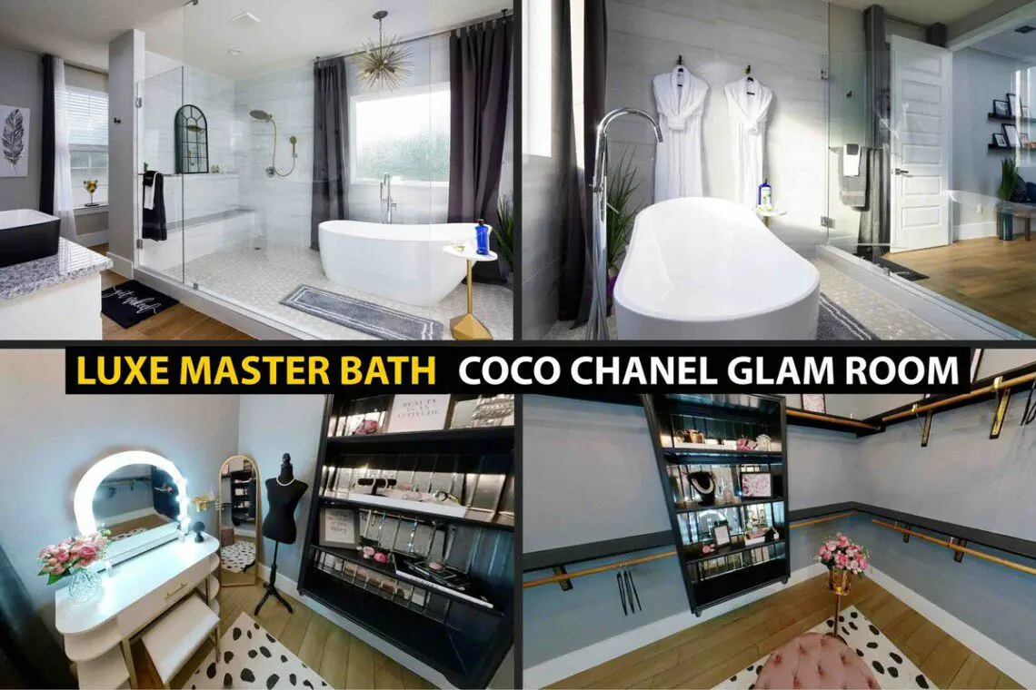 Master Bedroom: King Bed w/ Luxury Bathroom that has amazing bathtub & Shower all behind glass (gotta look at pictures for this one!) + a Coco Chanel Themed Champaign/Glam Room with lighted makeup vanity!