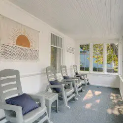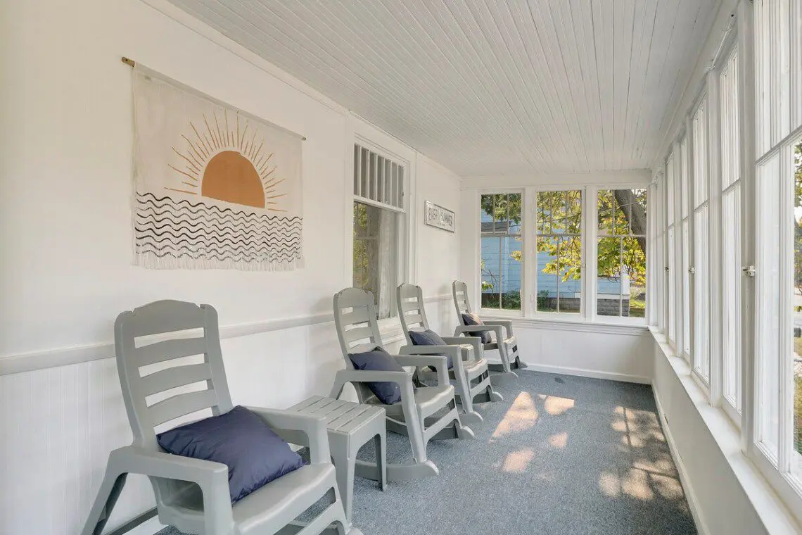 There is a large sunroom at the front of the home and a smaller one at the back of the home overlooking the outdoor seating area.