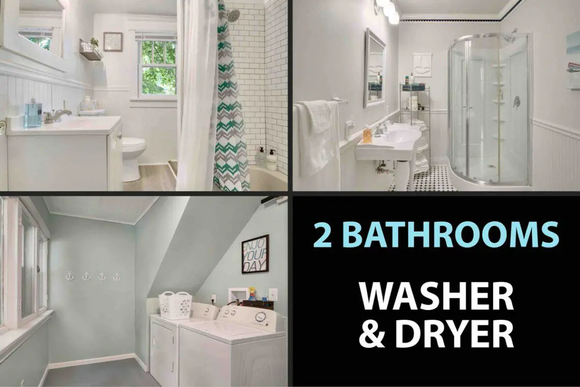 2 Full bathrooms (one upstairs and downstairs) means you and your friends will never need to wait on each other – each bathroom is very modern with high end fixtures.