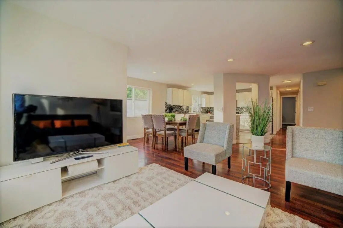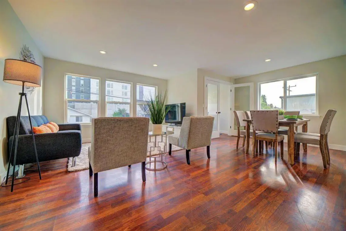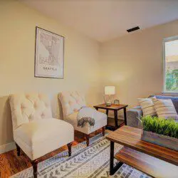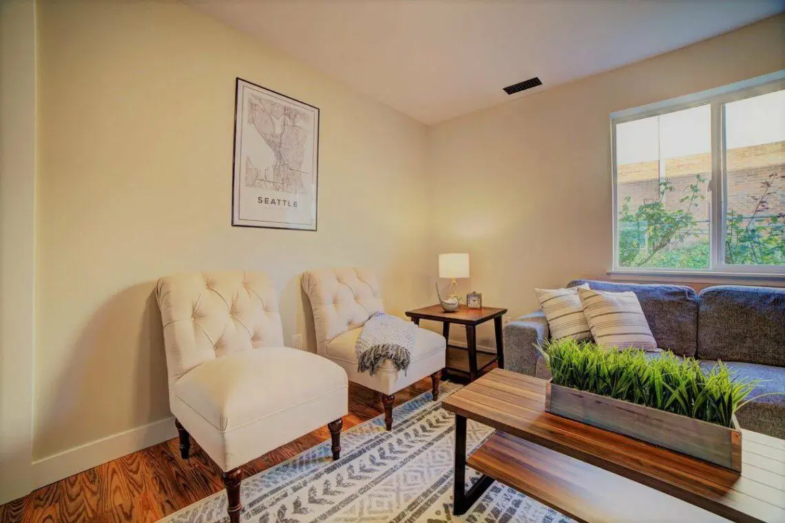 Enjoy this light-filled home featuring two living rooms-one on the main level and the other on the lower level, both with Smart TVs. A fully equipped kitchen within the open concept living area is perfect for family and friend gatherings. High-end stainless appliances, and granite countertops will make you feel right at home in the heart of North Seattle’s Greenwood neighborhood. The lower level has a kitchen nook that is perfect for morning coffee, making movie night popcorn, and playing board or card games around the table.