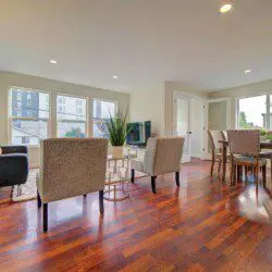 Large windows in every room lets you enjoy the heartbeat of Seattle life. Blackout shades in each of the five bedrooms ensures a good night’s sleep in five-star beds and linens. Nestle in the king en suite bedroom and relax while streaming your favorite movies and shows on the 50″ Smart TV.