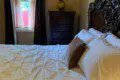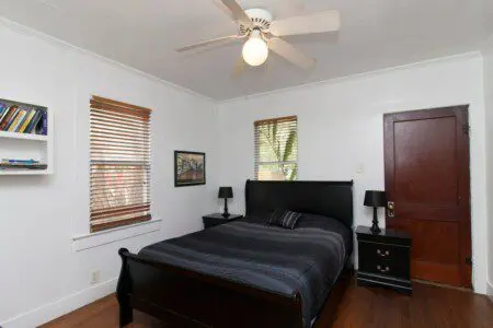 The master bedroom is in the middle of the house near the kitchen and has a queen size Serta Memory Foam mattress. It also includes access to a shared bathroom.