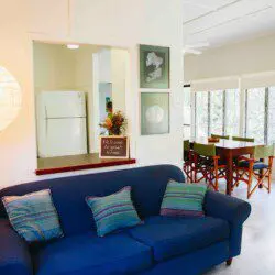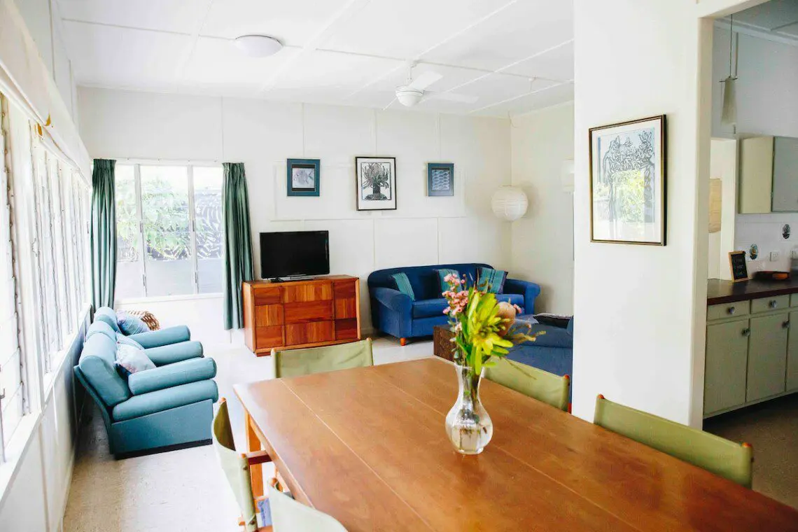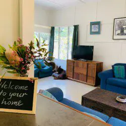 The double bedroom adjoins a bedroom with 2 single beds so perfect for families with young children. The queen bedroom is more private and has a built in wardrobe. All windows and doors have screens and all rooms have fans. There is a second shower and toilet in the garage which is perfect for using when coming back from the beach or for a group of people.