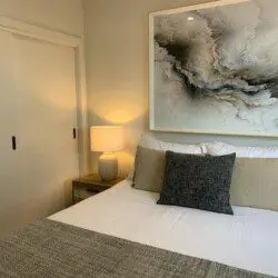 Wash away the day in the sleek modern shower then collapse into the quality bed for a great nights sleep in the quiet and dark bedroom.