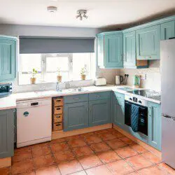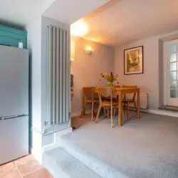 On entering the property you will find a cosy sitting room with an open fire, dining table with seating for 4 persons (extends to seat 6), TV, Freeview and Netflix. You’ll find a fully equipped kitchen which contains a microwave, fridge, freezer, toaster, kettle, electric cooker and ceramic hob.