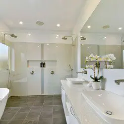• Main Bathroom: Shower with dual shower heads, bath + heated towel rails