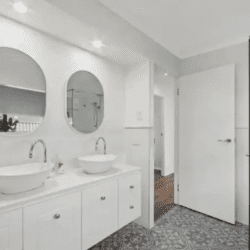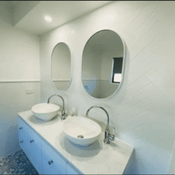 Two spacious bedrooms with queen beds, ceiling fans and robes. Stunning bathroom with beautiful tiles, double vanity and bathtub.