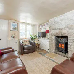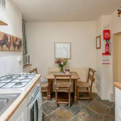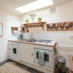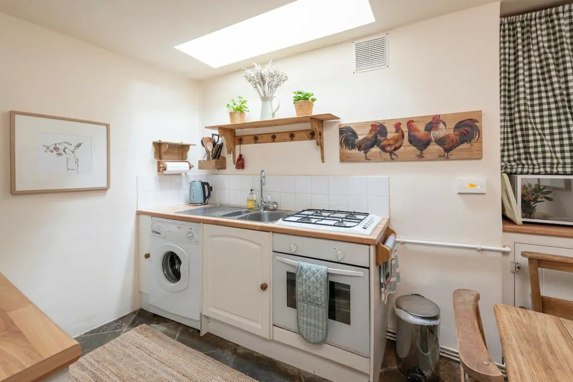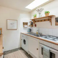 On entering the property you will find a cosy sitting room with electric log burner effect fire, TV, Netflix and DVD player. You’ll find a fully equipped kitchen which seats four and contains a washing machine, microwave, fridge, freezer, electric cooker and gas hob.