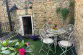 Double bedroom with 5 foot brass bed, landing with door leading to small private roof terrace with furniture for 4 people.