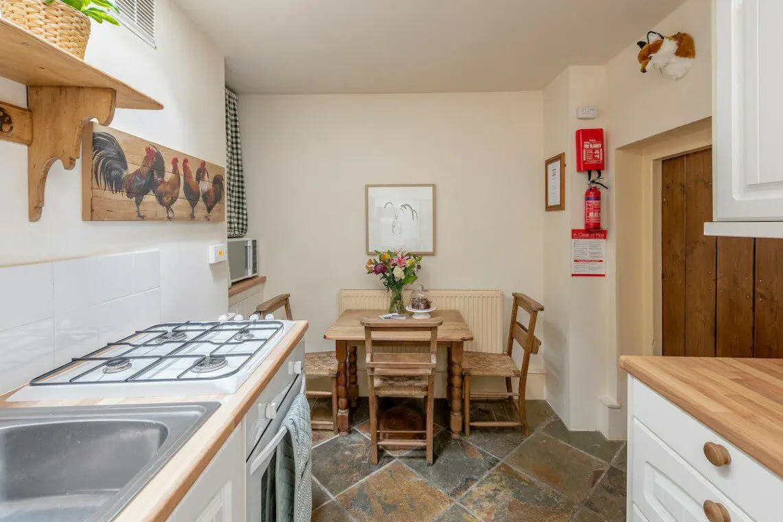 Fox cottage is a charming, quirky 250 year old Cotswold stone townhouse set over three floors just two hundred yards from the town centre in the conservation area of Tetbury. The property has retained its traditional features such as exposed beams, wooden floors and even a small, hobbit-style door leading onto a small private roof decking- the perfect place to enjoy a glass of wine after a day’s exploration! Surrounded by rolling countryside, royals connections and historic buildings Tetbury is a great base to explore all The Cotswolds has to offer.