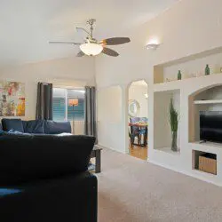 Main floor living boasts a large living room with a 45″ Smart TV. Sink into the plush sectional after a fun day out and about as you stream from your favorite sources such as Netflix. Prime, Hulu and much more. The brightly lit kitchen has plenty of room to prepare family meals and is fully stocked with everything that you need. Everyone can eat together around the long dining table as well as in the kitchen nook. Settle in for a great night of sleep in one of the three Queen bedrooms, one of which is an en suite. There is a full bathroom conveniently located in the hall.