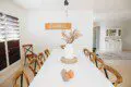 Adjoining the living area is the spacious kitchen. It is very well equipped with all the appliances and utensils that any budding family chef would require. There is an elevated 12-seat dining table perfect for gatherings to enjoy a meal and spend special time together, with high chairs also available.