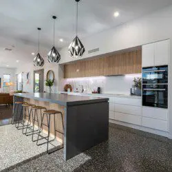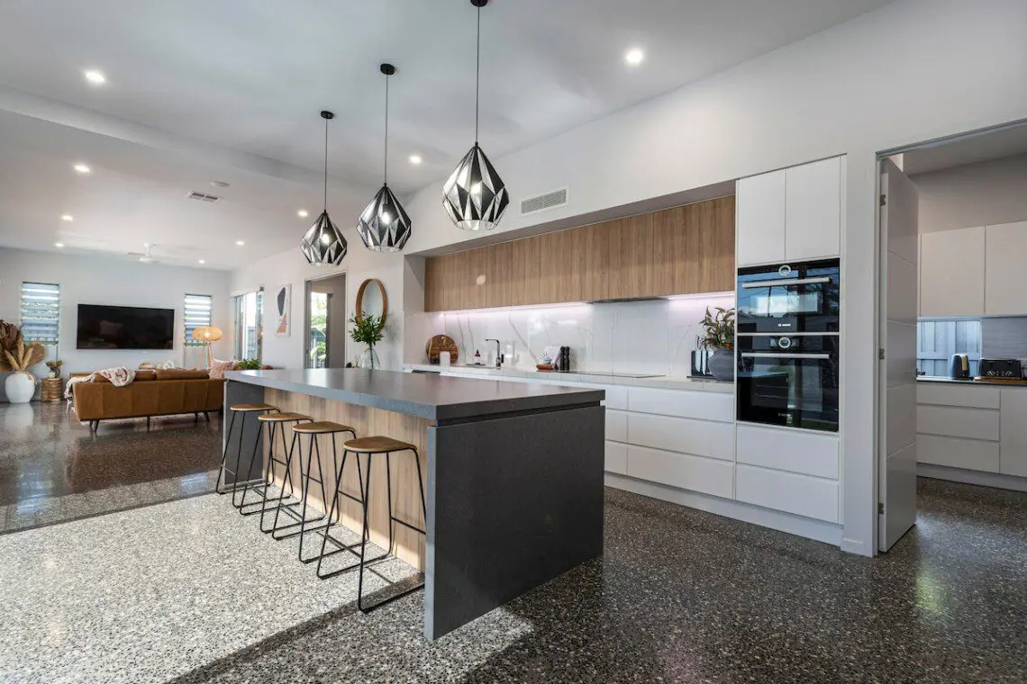Stunning gourmet kitchen positioned as the hub of the home, equipped with modern appliances and all amenities needed. Basic condiments such as salt, pepper, oil, tea, coffee, sugar etc. provided. Generous 3m island bench, Bosch microwave-convection oven as well as a steam assist oven, five-burner induction cooktop, super-quiet external exhaust fan. A walk-around butlers pantry offers additional storage and connects to a great sized laundry with washing machine & dryer.