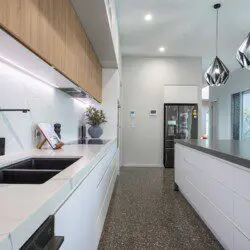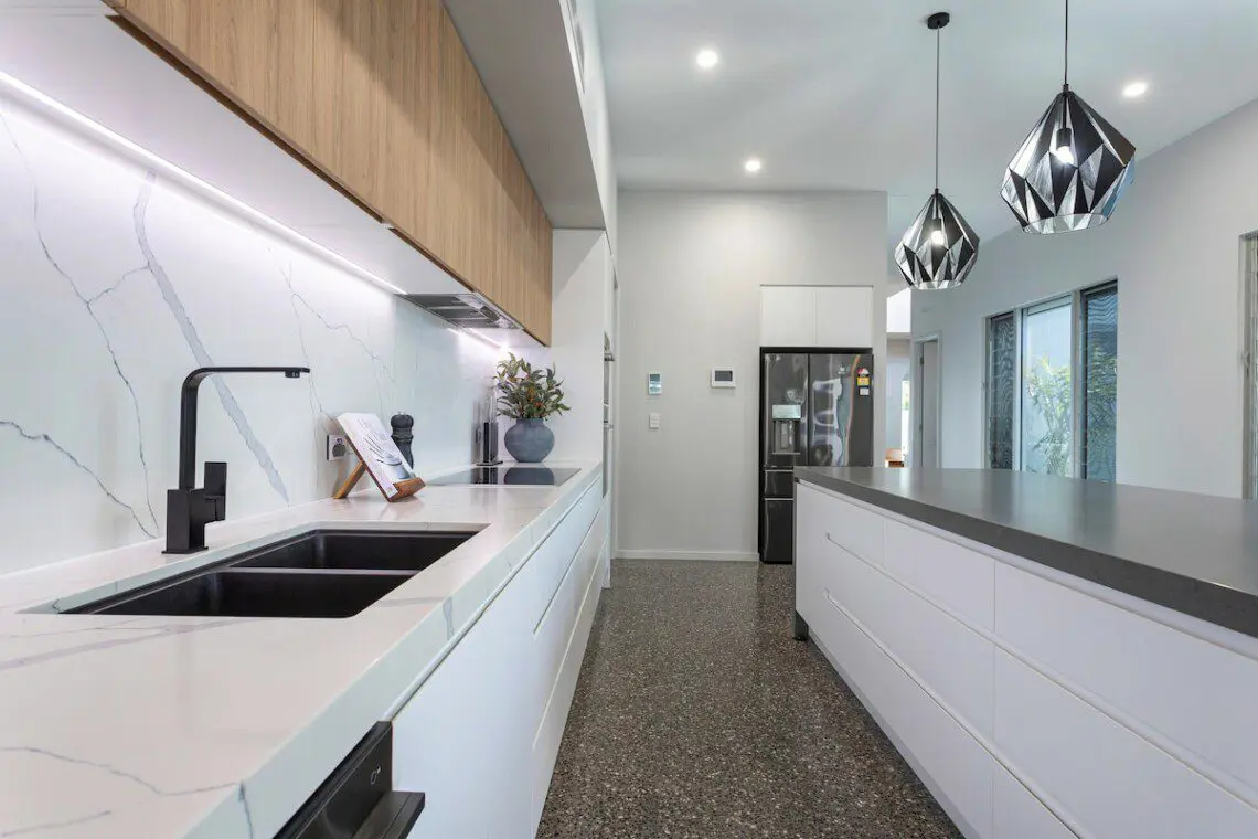 Under two years old and set atop one of Maroochydore’s highest blocks, this home enjoys an elevation that captures the incredible nearby sea breezes and glimpses of the ocean which can be seen from one of the spacious upstairs bedrooms.