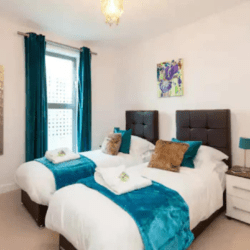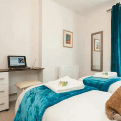 This bedroom is set up from king size or two singles depending on your choice it also has a dressing table that can be converted to a work desk.