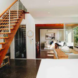 This stunning home features light-filled interior with louvred windows throughout to capture the beautiful ocean breezes and sound of the waves rolling in. Polished concrete floors and wool carpet throughout.