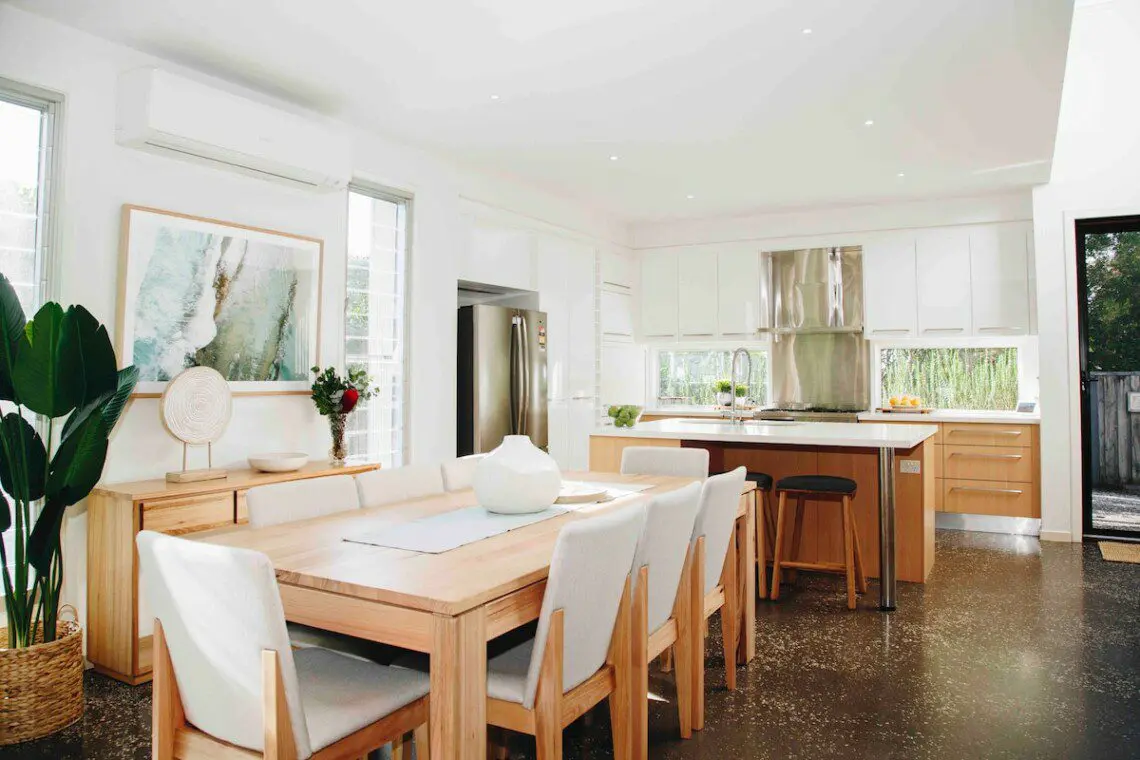 The living area has a 55inch HD Smart TV, with all the main streaming apps & built in chrome cast. Xbox One, amazing sound system with various home streaming devices that configure with Spotify. Board games and children’s books from ages 2-10+. Reverse cycle air-conditioning through-out as well as in the master bedroom.
