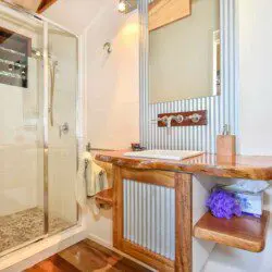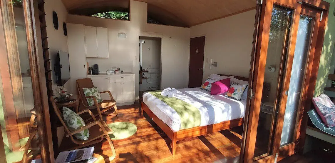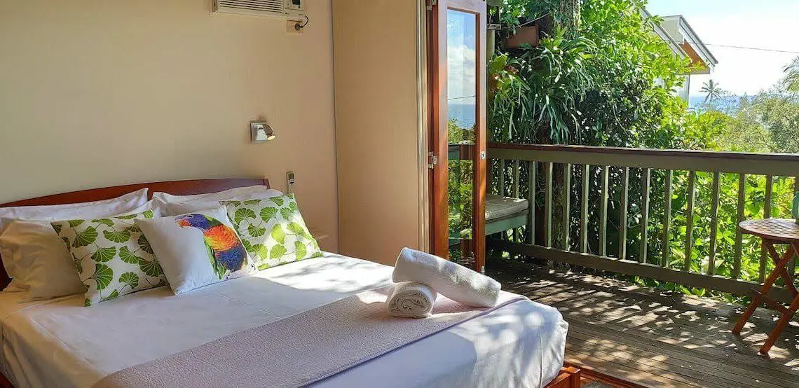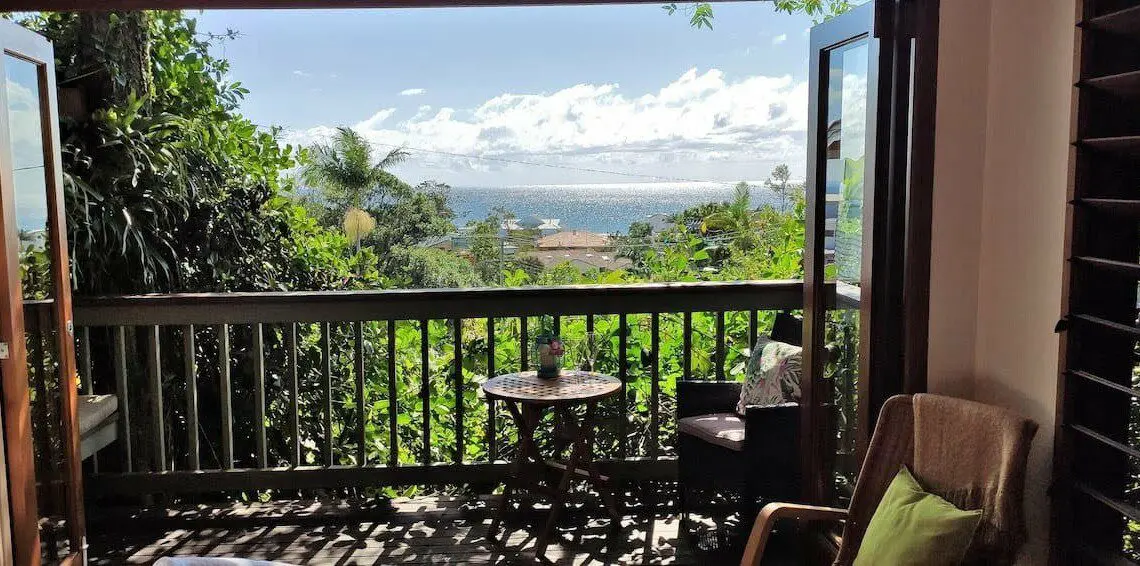 Cute little tree top getaway. Fantastic view of the ocean but feels like you are in the rainforest. Beautiful hideaway and only a 5 min walk to the beach. Was surprised that they had a bbq on the balcony to cook on while looking at the water. Loved everything about it and I would definitely be coming back again. The bed was also very comfy!!!