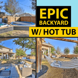 This is where the fun happens – Hot Tub, Grill, Trampoline, Yard Games, Wooden Playhouse for kids, Outdoor TV, String Lighting, Patio with privacy curtains & More – we just ask that you respect the neighbors and keep the volume down at night during the city’s quiet hours (9:30 pm – 7 am)….aka move the fun indoors.
