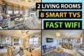 You’ll have Lightning Fast Wifi throughout the house (400 Megabytes Per Second – aka plenty fast for any streaming, zoom calls etc), 8 Smart TVs, Cable, Bluetooth Speakers throughout the home, high end cookware, full washer/dryer, voice activated lights and much more…..this place is AMAZING, just check out the photos!