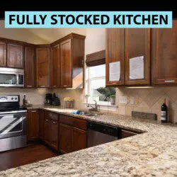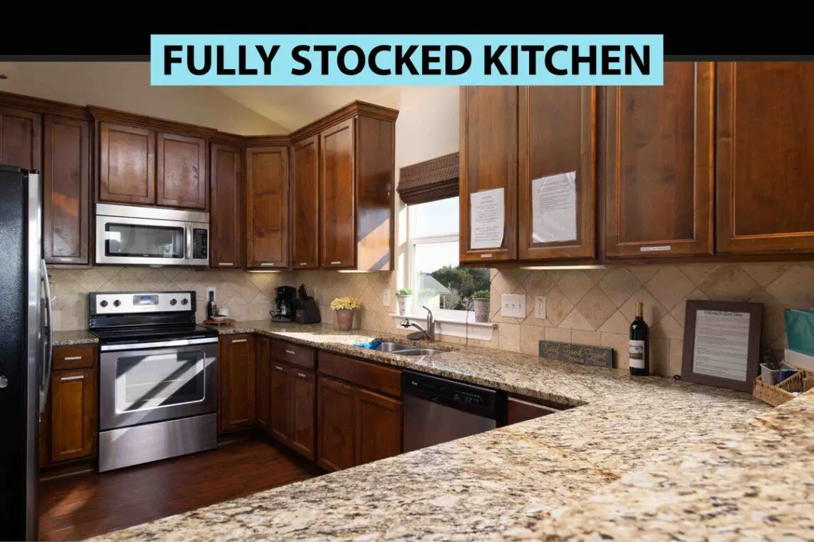 You will have everything you need to make meals for a large group – Modern kitchen with a full-sized oven, stove, fridge, microwave, dishwasher, coffee maker and all of the pots/pans, spices, and cooking oil you’ll need!
