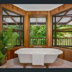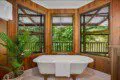 The other two beautiful bedrooms are located on the first level of the home which both have access to a stunning bathroom offering a claw foot bathtub next to bay windows, taking in the staggering views.