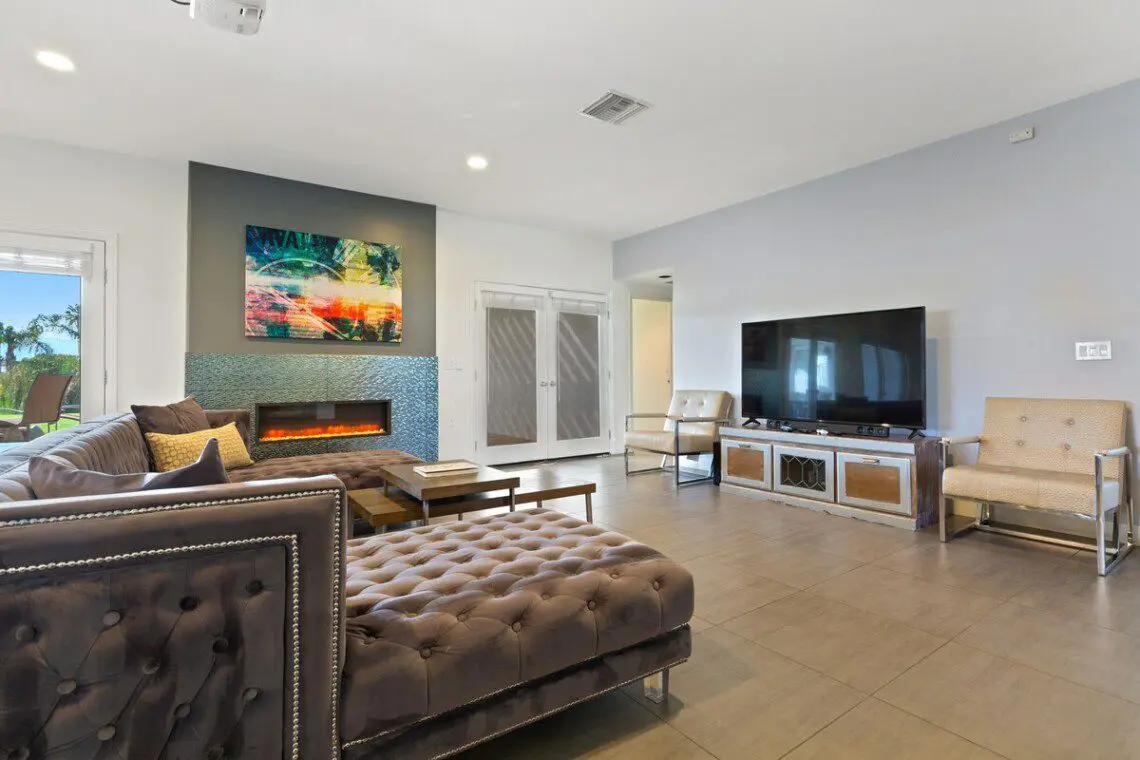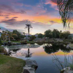 Managed by Purveyors of Leisure Properties, The Coachella Estate is the perfect setting for a variety of guest stays. This incredible property features more than 2 acres of lush outdoor space including a gorgeous saltwater pool with hot tub, waterfall and fire features, a huge private pond with Koi and other fish and ducks, and a large grill with outdoor dining area including an outdoor bar. Festival goers will be happy to learn this location is only minutes walk from the VIP entrance of the festival grounds.
