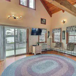 Water access to Rocky Bound Pond is via a short walk down a right of way to an aluminum dock for guests to use. From the dock or waters edge you can enjoy seasonal activities such as swimming, float in a raft, launch a kayak, fish, sunbathe or winter activities such as snowshoeing, cross-country skiing, ice fishing. Shorefront is shared.