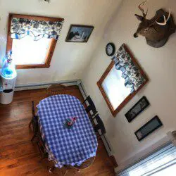 Kitchen is equipped with all the necessities; utensils, dinnerware, pots/pans, coffee maker that can accommodate K-Cups or grounds, toaster, microwave, dishwasher, stove. Set up on the table for six or take your creation to the sitting area on the porch overlooking the pond. This home is equipped with a water dispenser. Can accommodate a 4 or 5 gallon water jug, which can be purchased at local grocery stores. Please note, bottled water is required for consumption. Guests must provide their own bottled water for consumption.